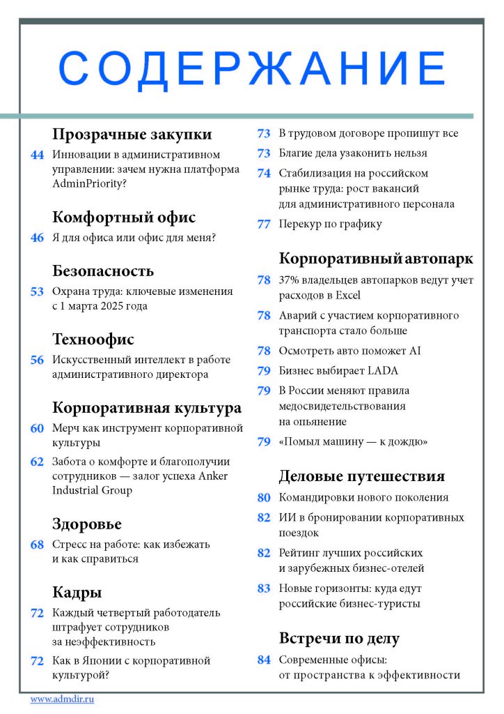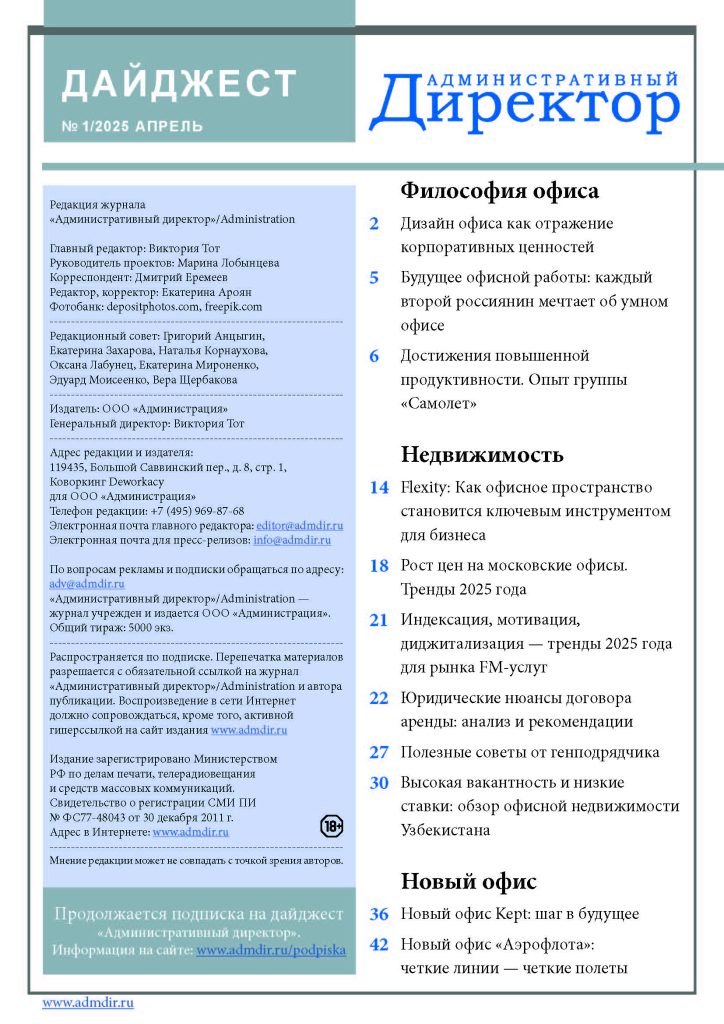 Вышел № 1 ( 2025 ) Подписаться на журнал «Административный директор» можно по ссылке https://admdir.ru/podpiska/