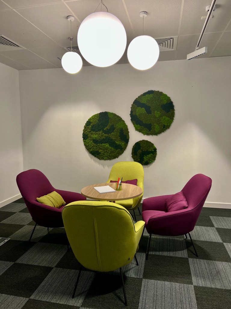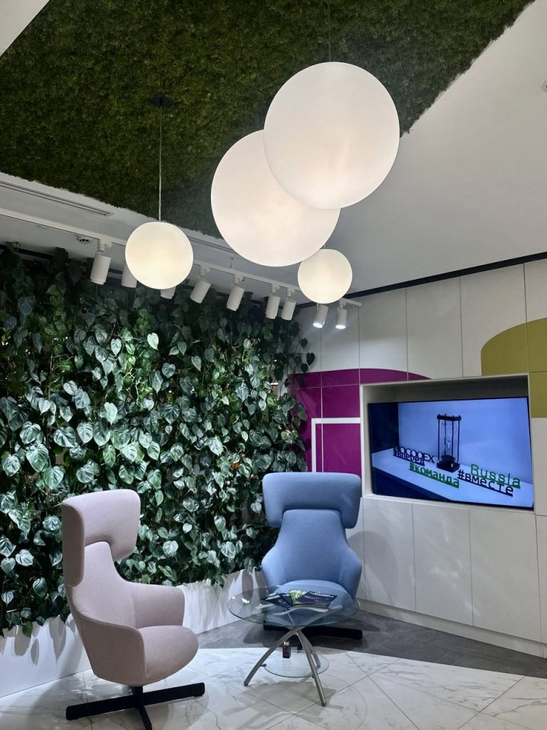 В короткие сроки воплотили задуманное в жизнь, наш офис получился ярким, легким, очень зеленым.