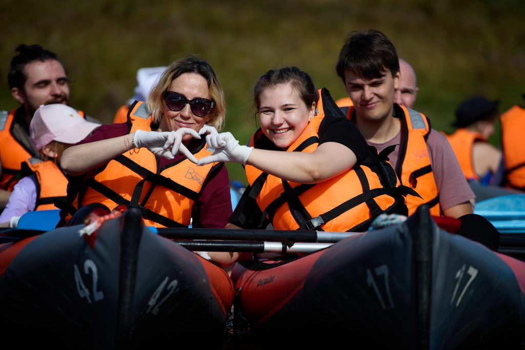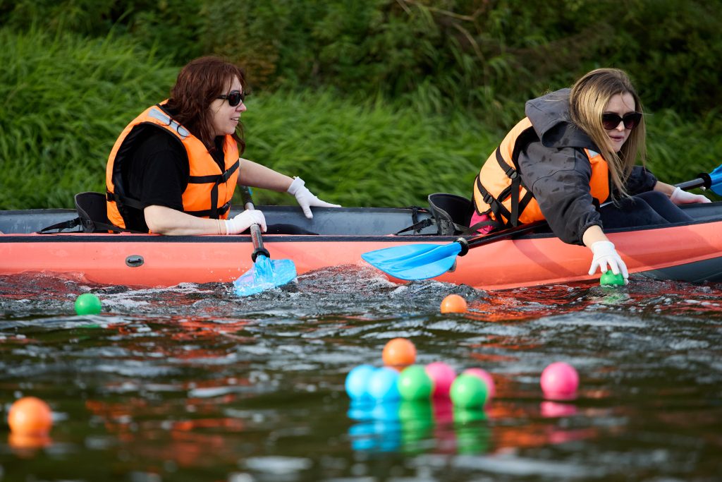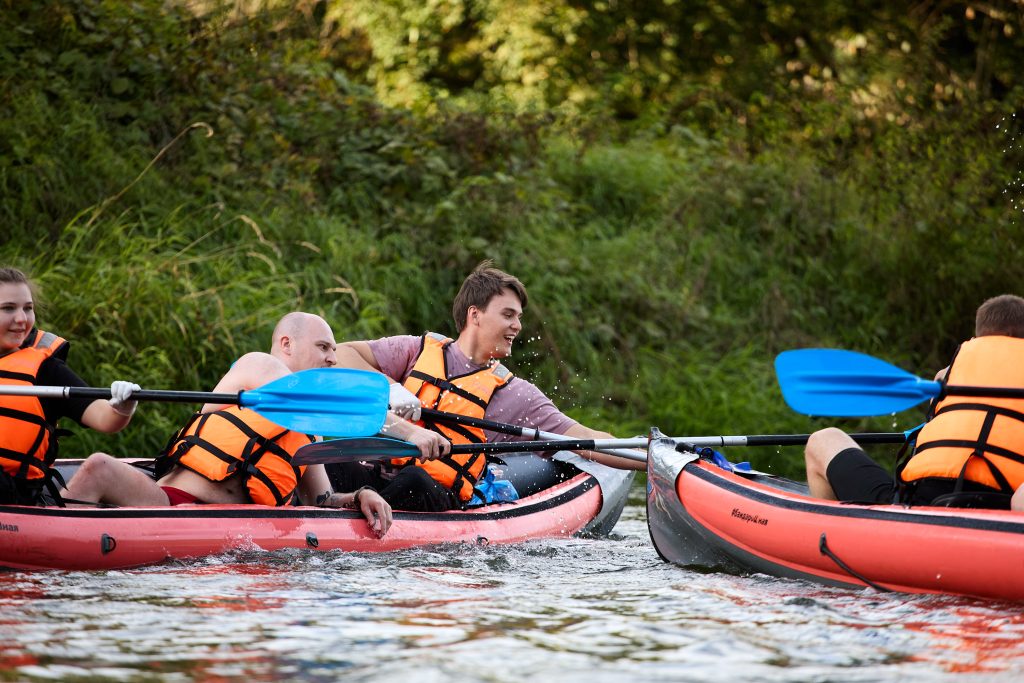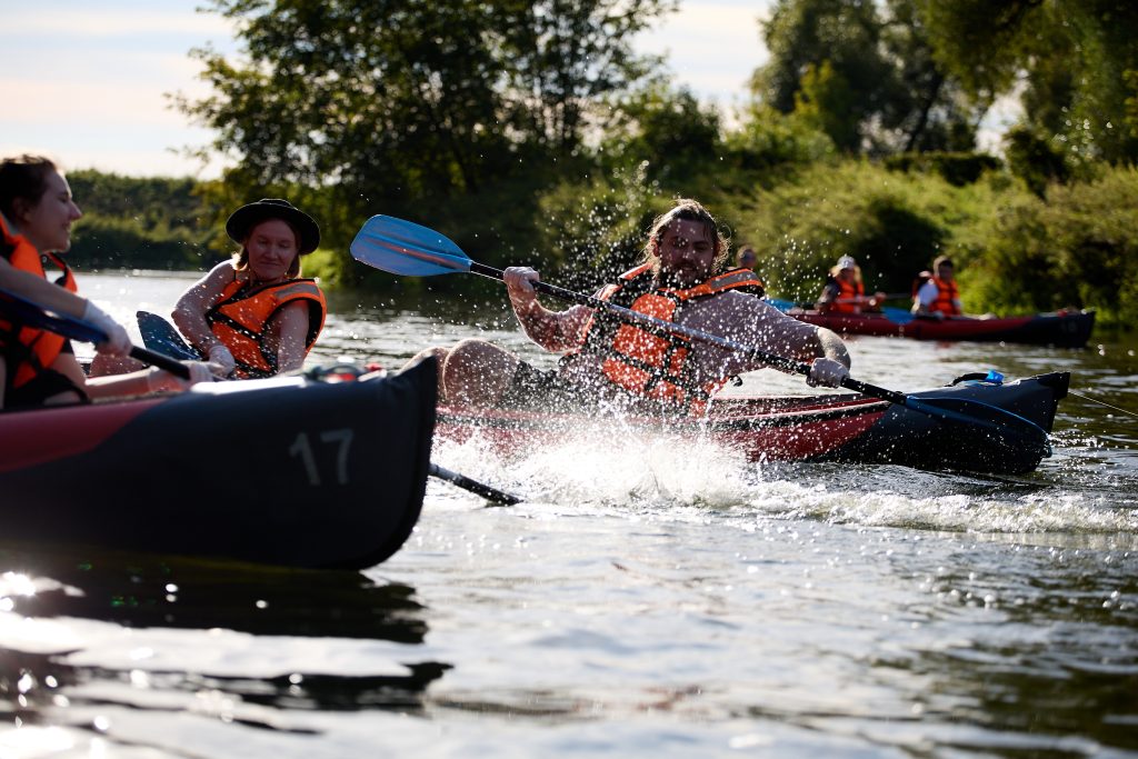 Для полного погружения мы устроили на воде «Байдарошные старты». Это были простые командные испытания: нужно было создать на воде фигуру из байдарок, прокрутиться всем «караваном» вокруг своей оси, устроить мини-гонку. Этого хватило, чтобы появились смех, крики и брызги. Работа в тот момент перестала существовать — все мысли были только здесь и сейчас.