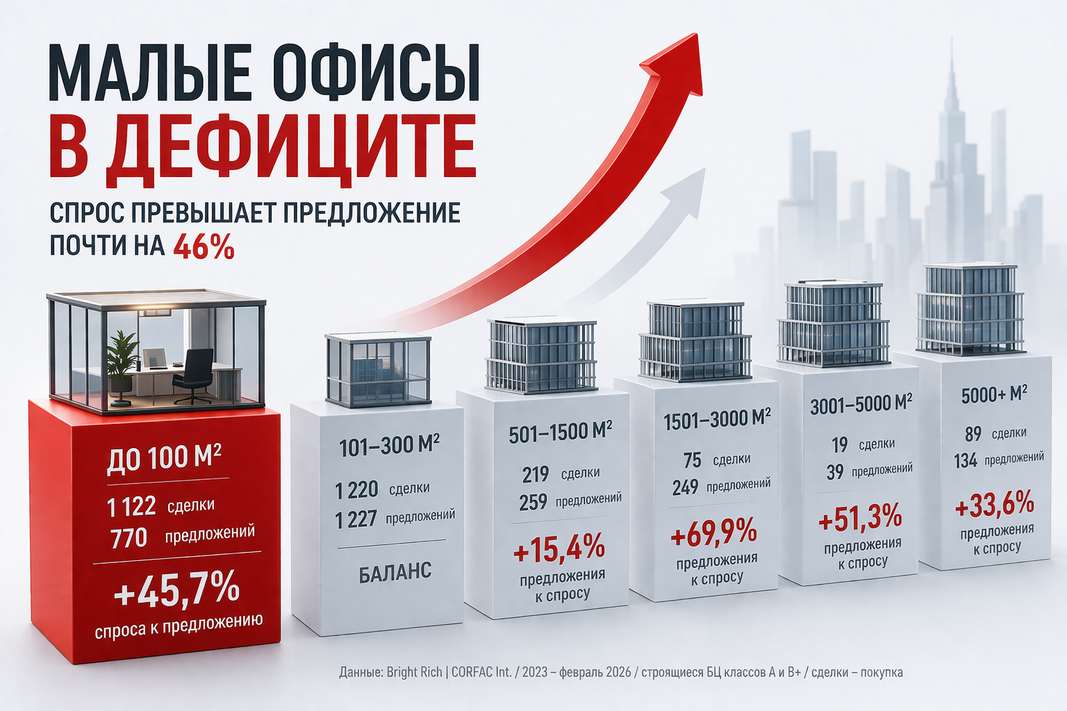 Если коротко: малых офисов не хватает, больших — слишком много.