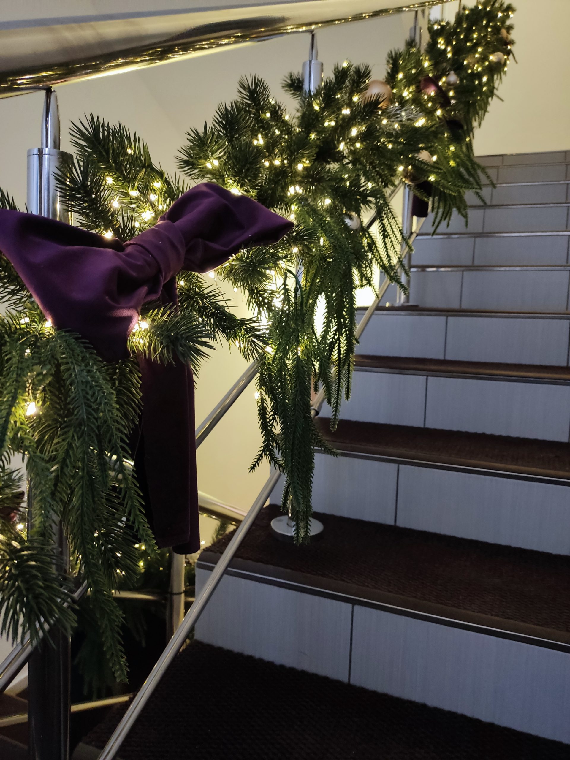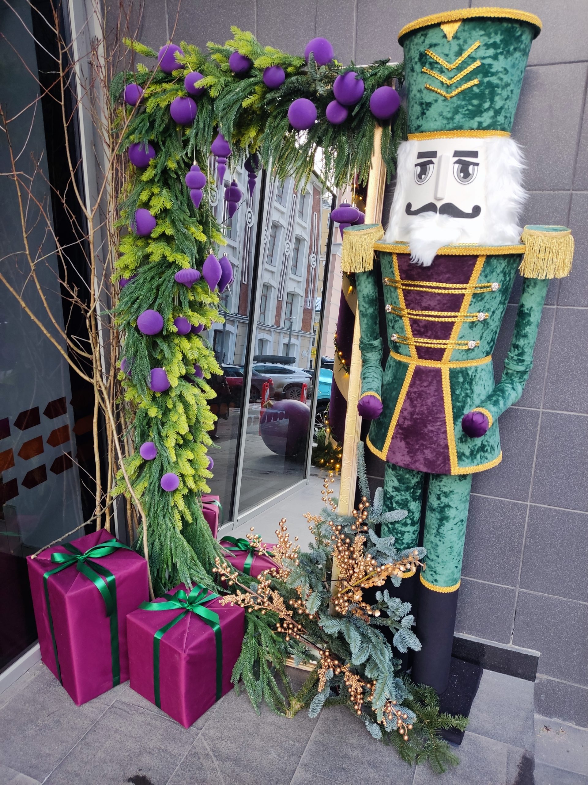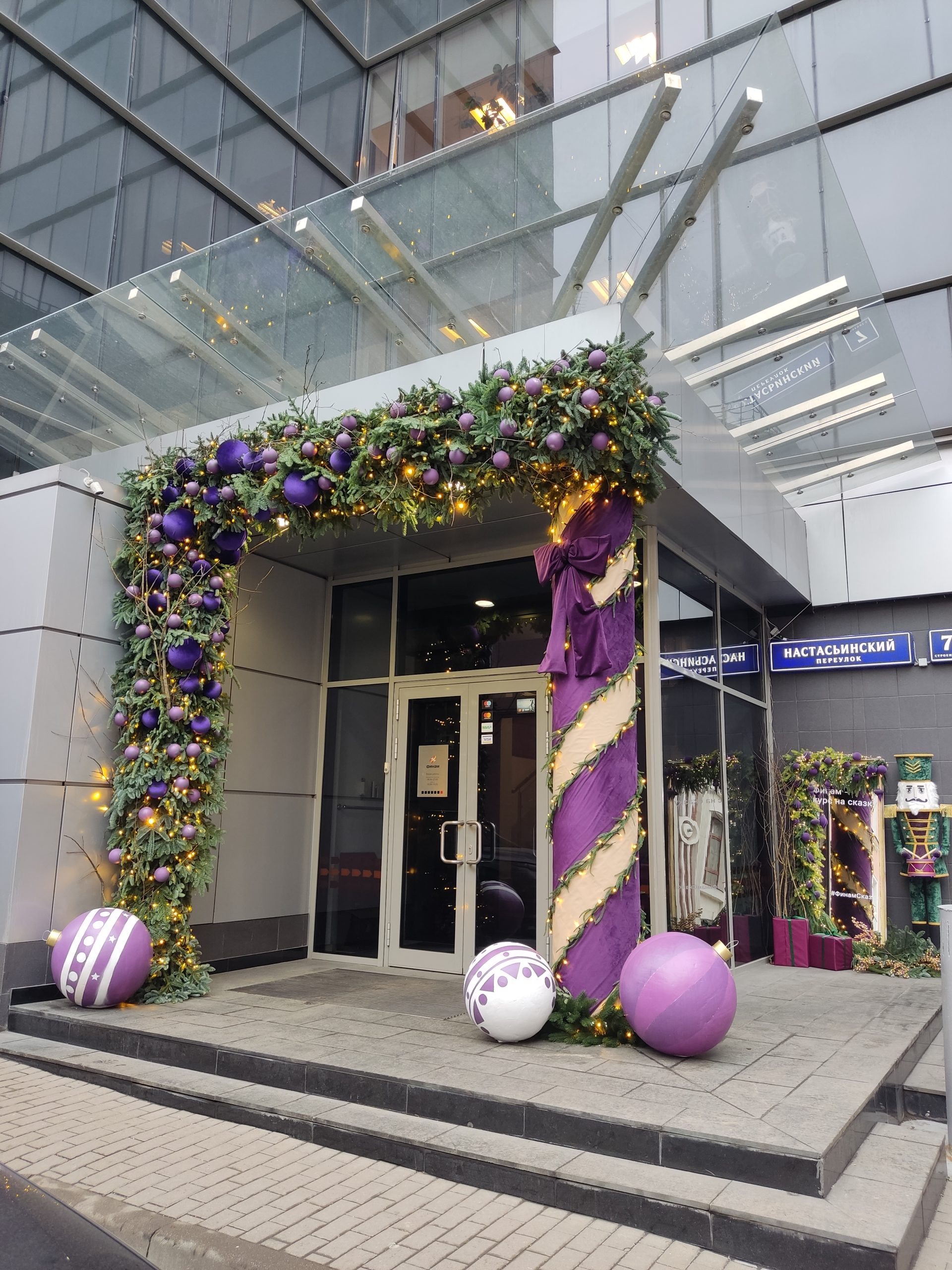 Особое внимание уделено маршруту движения: входная группа, ресепшен, лестничные пролеты до седьмого этажа объединены в единую новогоднюю историю. Праздник сопровождает человека постепенно, без перегрузки, создавая ощущение заботы и продуманности. Это пример того, как сказочные мотивы могут существовать в офисе деликатно и точно.
