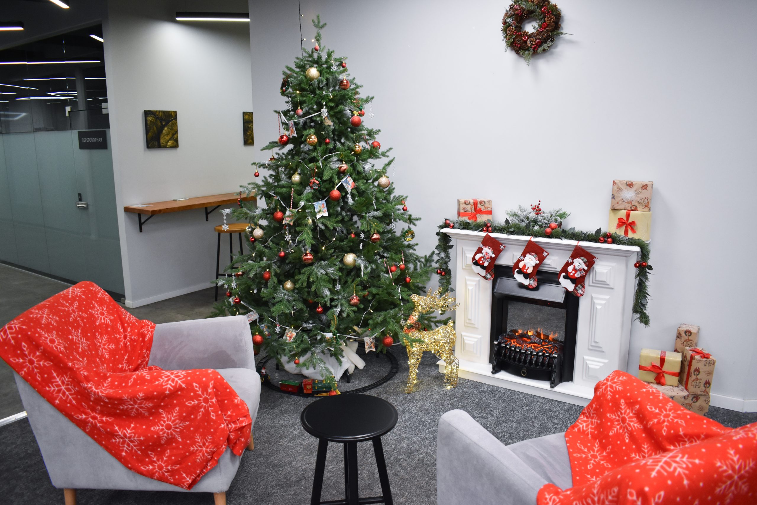 Здесь важно не только визуальное оформление, но и сценарий: возможность сделать паузу, выпить кофе, собраться у камина, написать письмо с пожеланиями. Новый год в этом проекте — не событие, а состояние, в котором резидентам спокойно и комфортно находиться в течение всего рабочего дня.