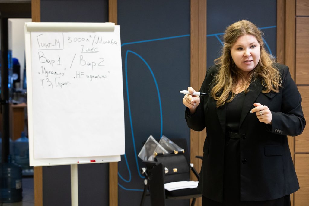 Вторая группа, которую модерировала Мария Борисова, директор по развитию, «Гинт-М», сфокусировалась на теме закупок и партнерского отбора в условиях реальных ограничений проекта по строительству офиса: неполной документации, сжатых сроков, давления со стороны смежных подразделений. Участники разбирали сценарии «неидеального» тендера и формулировали критерии, позволяющие снизить риски при выборе поставщика в нестандартных условиях.