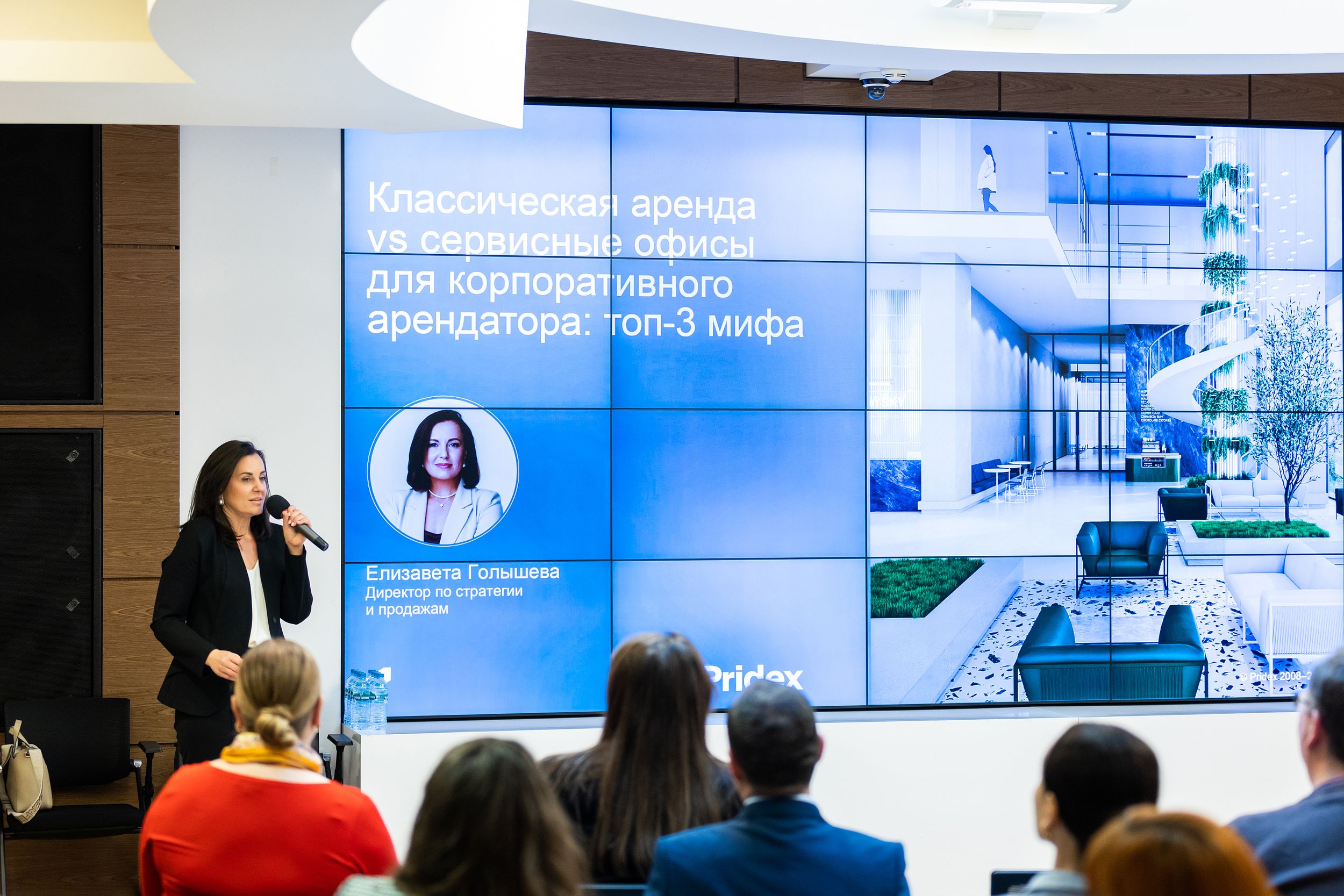 Основной темой выступления Елизаветы Голышевой, директора по стратегии и продажам, Pridex Spaces, стал разбор трех наиболее распространенных мифов в отношении сервисных офисов, которые мешают корпоративным арендаторам принимать взвешенные решения. Миф №1: сервисные офисы — формат для стартапов и малого бизнеса, а мы — солидная компания. Миф №2: мы потеряем контроль над офисом, процессами, сервисом. Миф №3: высокая стоимость, неясная экономика и скрытые затраты. В части развенчания последнего мифа эксперт представила детальный сравнительный анализ двух форматов размещения — классической долгосрочной аренды и гибких сервисных офисов на примере реального кейса.