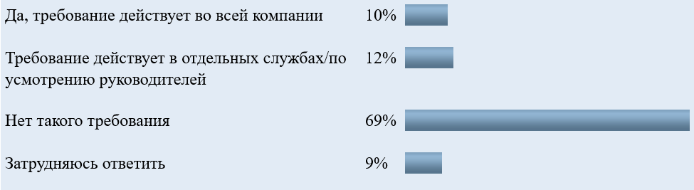 Что касается сотрудников, то, согласно опросу, 36% респондентов включают камеры во время видеозвонков: каждый пятый (21%) делает это по требованию компании, а 15% — по собственному желанию. Каждый второй (51%) не показывает себя, так как у работодателя нет четкого регламента по этому поводу. А 2% сотрудников противятся этому, несмотря на правила.