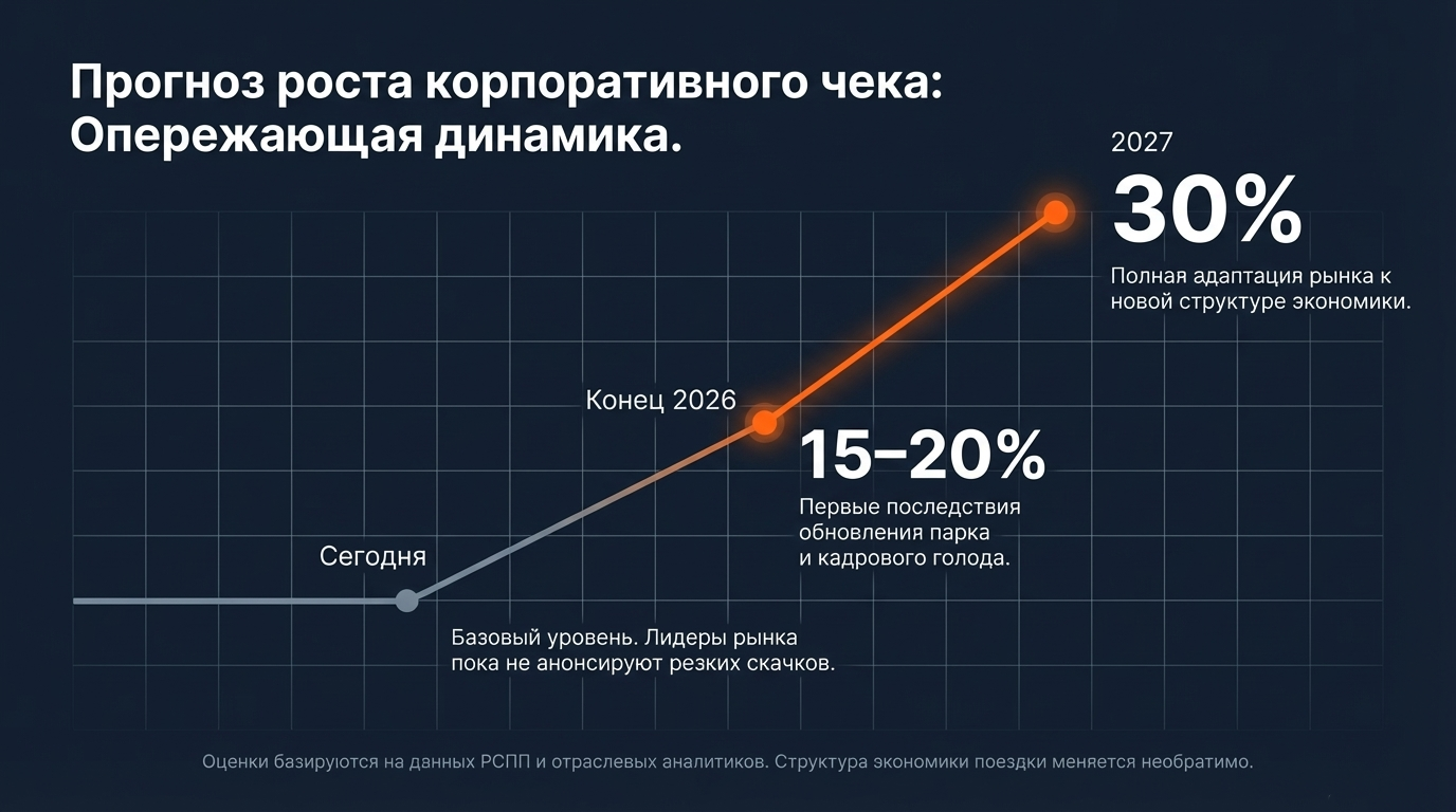 Для корпоративного заказчика реформа означает не немедленный, но предсказуемый рост расходов. Отраслевые аналитики прогнозируют подорожание поездок на 15–20% уже в 2026 году, а к 2027-му — до 30%.
